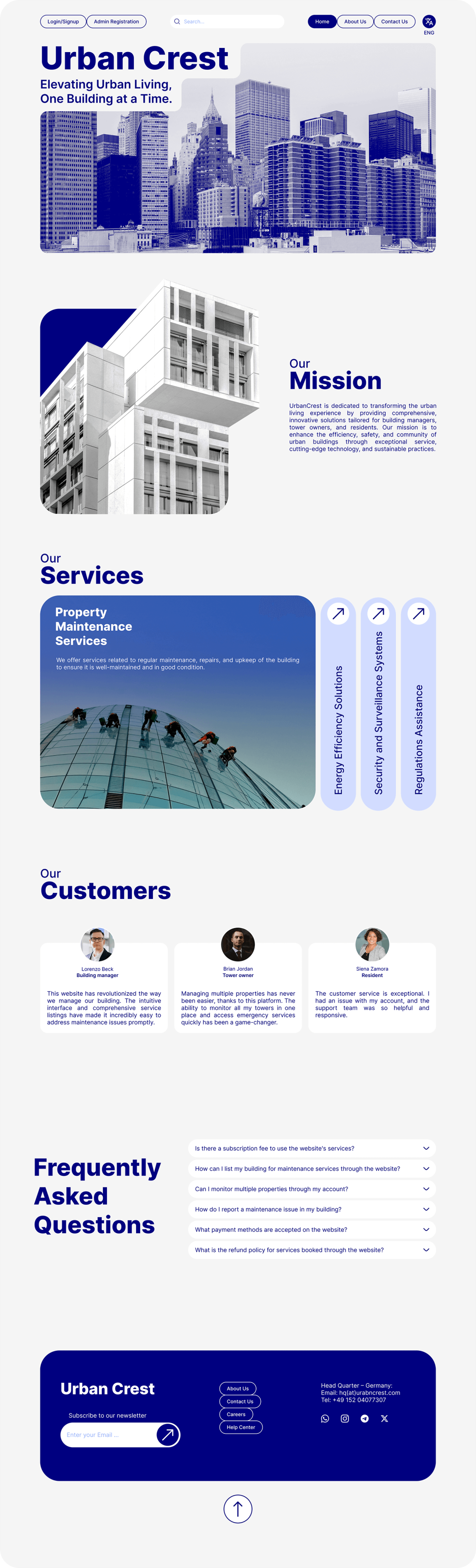The Urban Crest website design project aimed to create a user-centric platform providing services to building managers, tower owners, and residents. The design brief focused on developing a modern and professional website that offers a seamless experience for users to access maintenance services, manage properties, and connect with service providers.